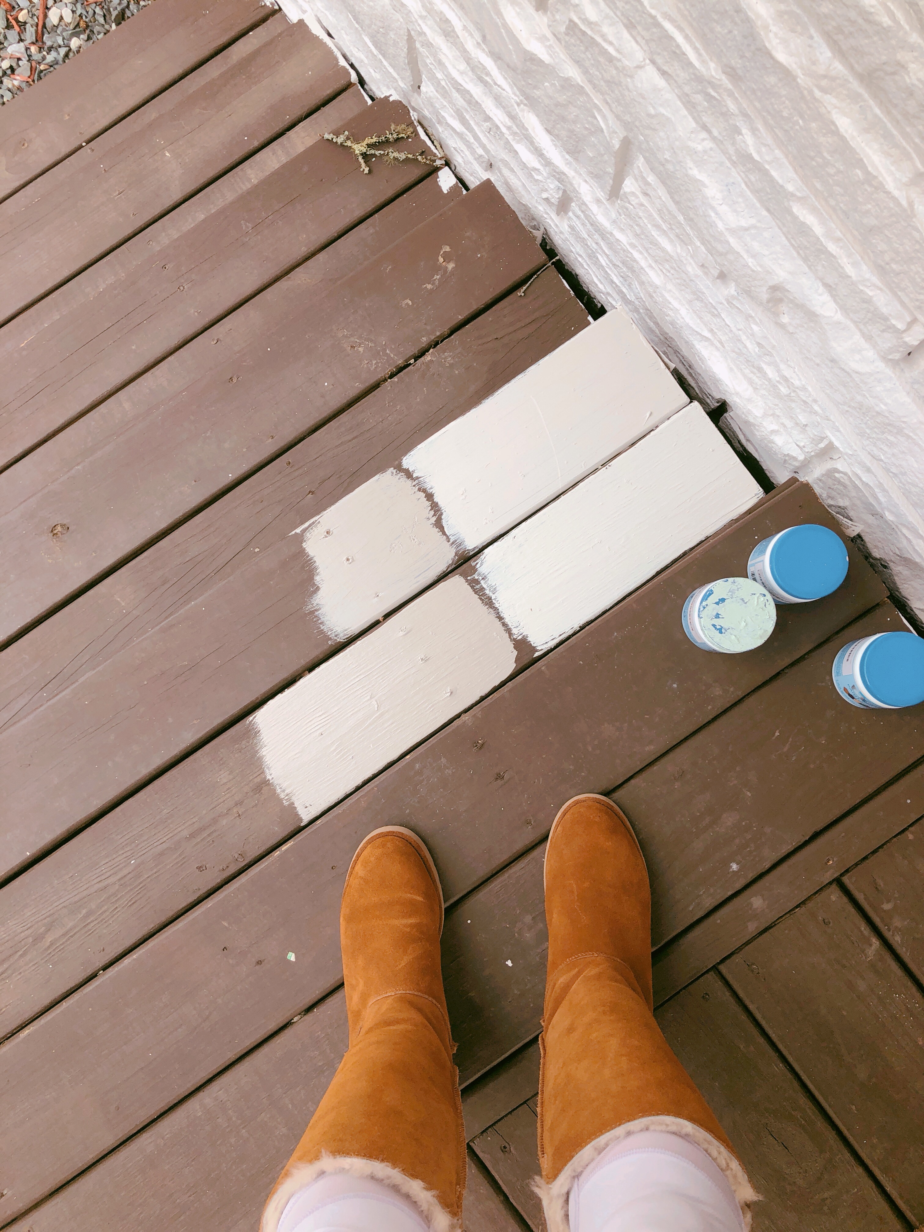 This is biggest WIN by far! Painting stone is no easy feat. While we didn’t hate the gray, we did feel it was too dark and heavy a color for us. We want a fresh farmhouse look with a lighter overall feeling.